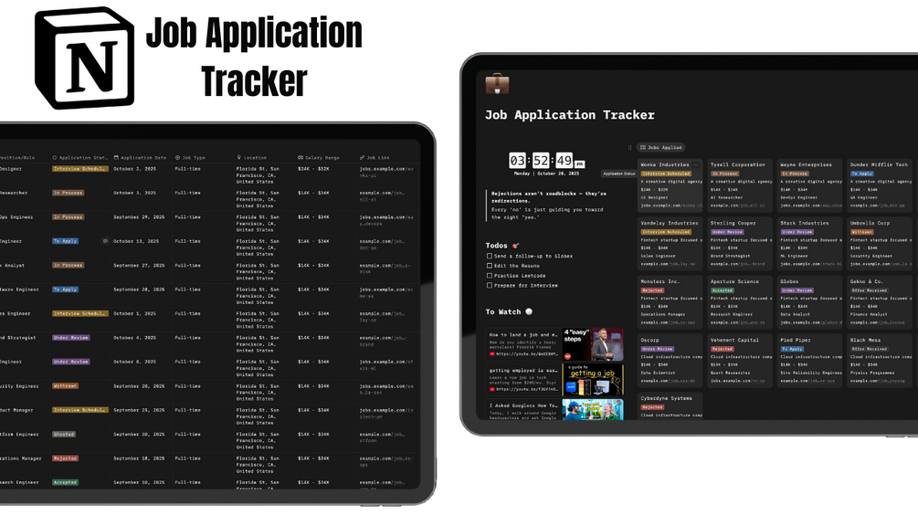 → 🗂 Board View by Status — Visualize your journey (To Apply → Applied → Interview → Offer → Hired).